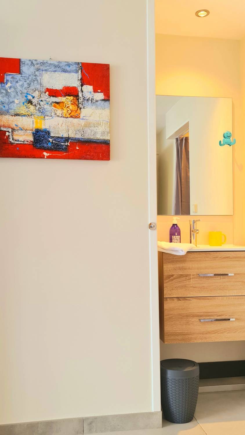 Située dans la résidence « Au bord de l’eau » avec accès à une grande terrasse commune sur pilotis, vous pourrez profiter des plages de, Saint-Gilles les bains, Grand Fond, Brisants et Roches Noires toutes situées l’une à côté de l’autre.