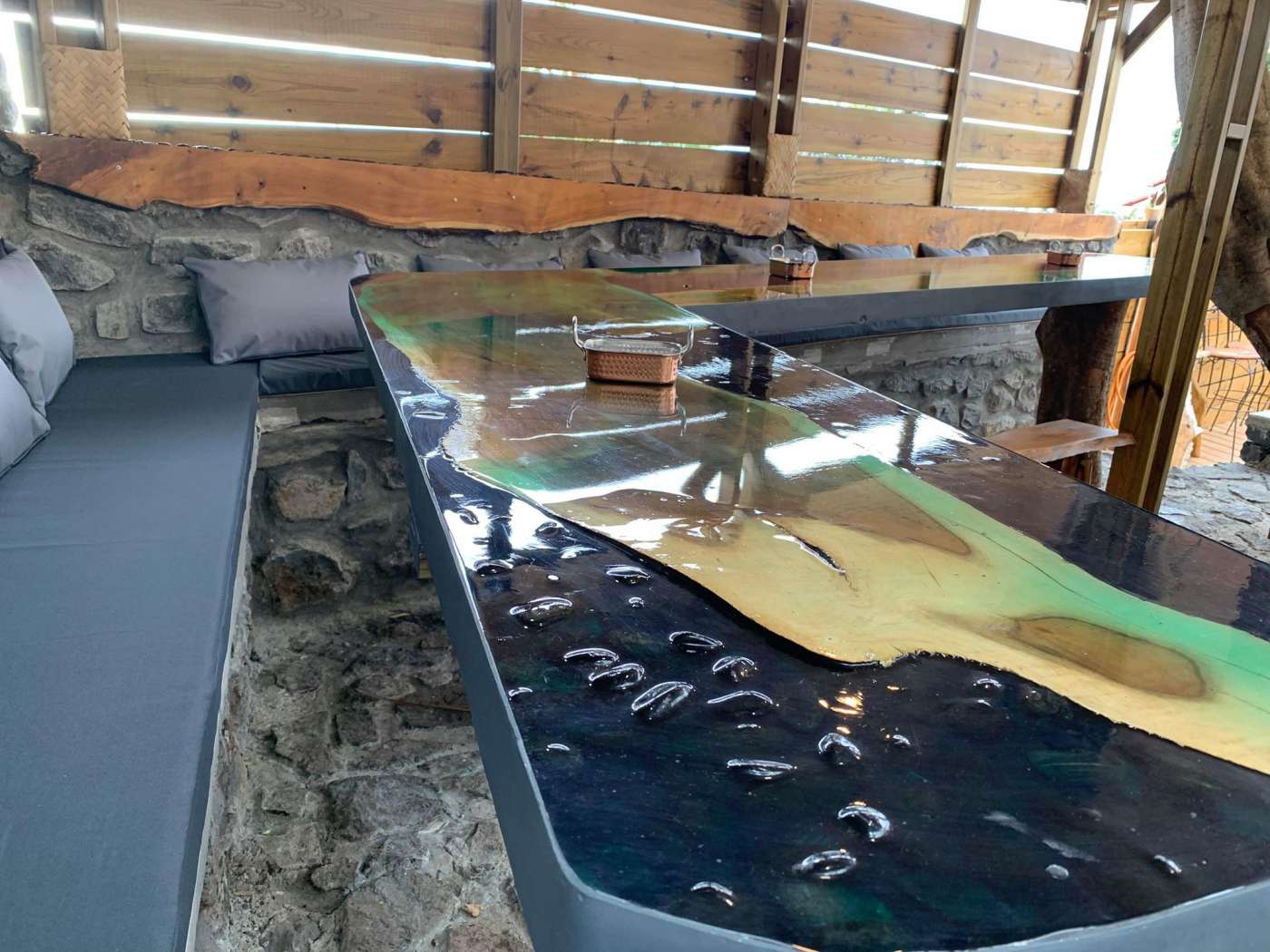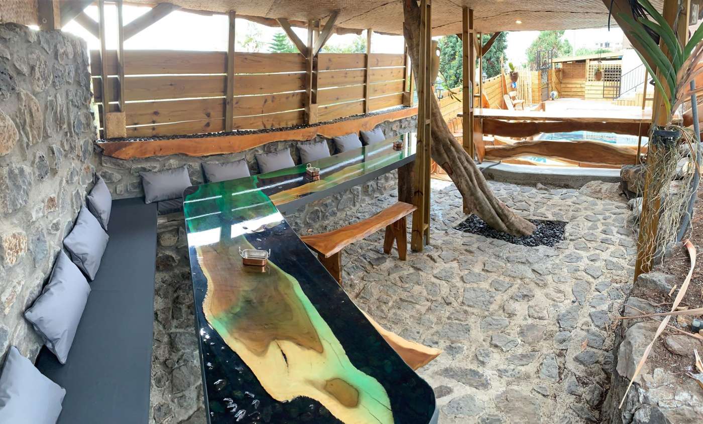 - d’un deuxième kiosque avec une grande table très agréable pour le petit déjeuner .