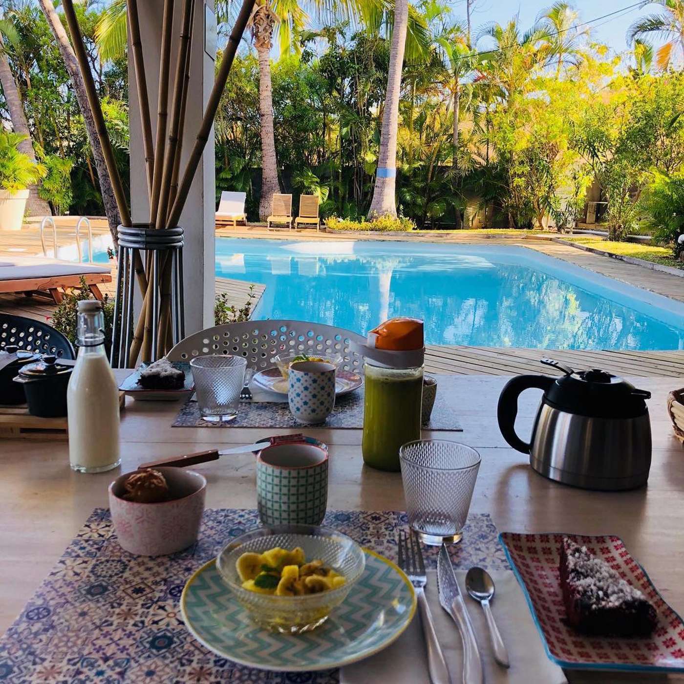 Villa Prana est plus qu’une maison d’hôtes c’est un concept de 500m2 au milieu d’un immense jardin tropical. Les hôtes vous proposent un séjour ressourçant durant lequel vous pourrez, si vous le désirez, prendre soin de votre corps et de votre esprit en optant pour un séjour détox par le biais de jus verts et/ou d’une nourriture saine. Rassurez-vous ! Ils savent servir des petits déjeuners copieux, sains et délicieux !